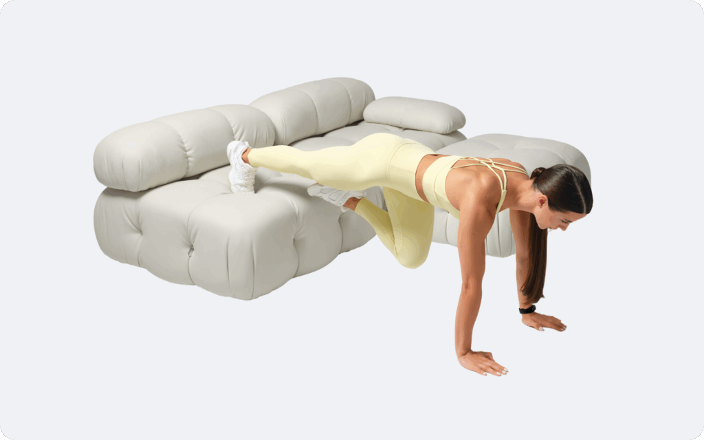 - Slightly lift your knees off the floor, keeping your core engaged and your hips low.