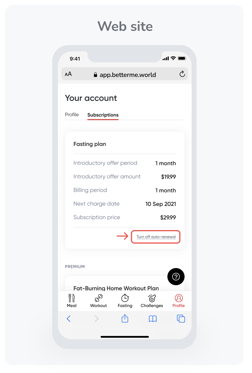 Buka aplikasi BetterMe, kunjungi profil Anda, dan pilih Kelola Langganan.